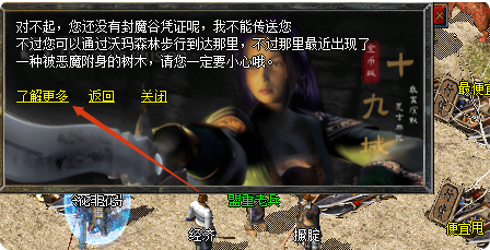 【十九城·经典地图线】不归路 → 避世森林 不归路是一条幽暗、狭窄的长廊,墙壁上刻满远古符文。这里经常刷新沃玛蝎蛇钳虫三统领。它把犹豫不决的人挡在外面,只把决心赴死的人送去下一层。 一道深不见底的裂谷,两侧峭壁上爬满毒藤。谷底盘踞着“地魔”—— 十九城版本里传授高级跨职业技能的BOSS级NPC。想学终极技能?先过他这关。 |